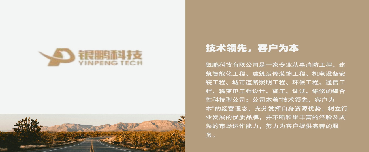 銀鵬科技有限公司是一家專業(yè)從事消防工程、建筑智能化工程、建筑裝修裝飾工程、機(jī)電設(shè)備安裝工程、城市道路照明工程、環(huán)保工程、通信工程、輸變電工程設(shè)計(jì)、施工、調(diào)試、維修的綜合性科技型公司。公司具有建設(shè)主管部門頒發(fā)的《建筑業(yè)企業(yè)資質(zhì)證書(shū)》:建筑裝修裝飾工程專業(yè)承包壹級(jí)、消防設(shè)施工程專業(yè)承包壹級(jí)、電子與智能化工程專業(yè)承包壹級(jí)、防水防腐保溫工程專業(yè)承包壹級(jí)、建筑機(jī)電安裝工程專業(yè)承包壹級(jí)資質(zhì)、通信工程總承包貳級(jí)、市政公用工程施工總承包貳級(jí)、建筑工程施工總承包貳級(jí)、古建筑工程專業(yè)承包貳級(jí)、機(jī)電工程施工總承包貳級(jí)、輸變電工程貳級(jí)、特種工程(特種防雷)專業(yè)承包不分等級(jí)、智能...